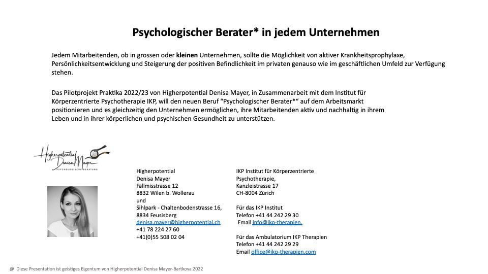 Neues Projekt - Ideation Praktika 2022 - Psychologischer Berater IKP im Unternehmen