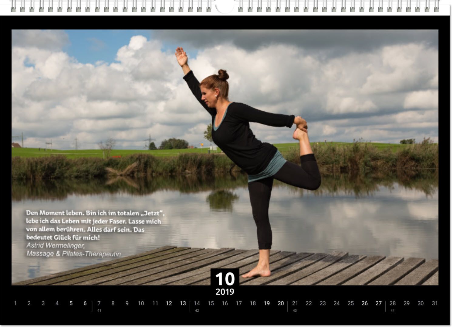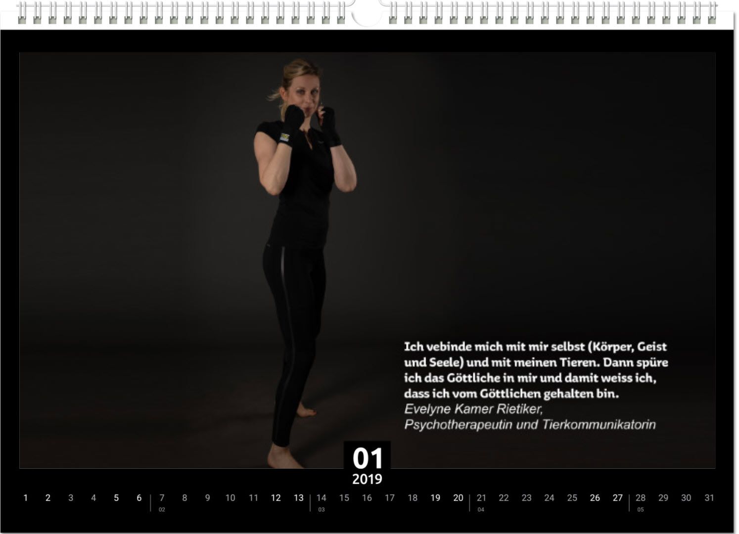 Und zwar ein Kalender mit Fotos von Frauen während einer Tätigkeit, welche sie gerne ausführen oder sich in einer Situation befinden, in welcher sie sich wohl fühlen.